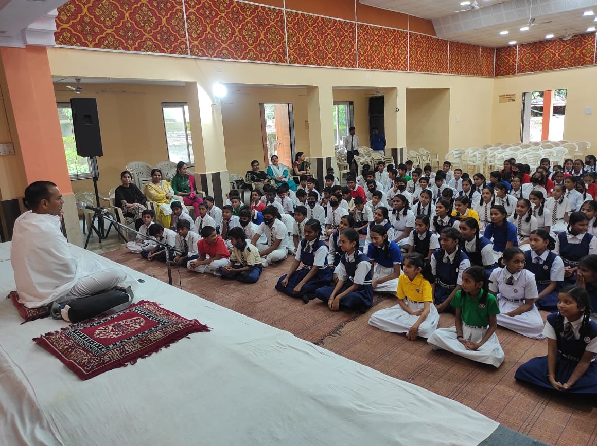 दर्शन योग महाविद्यालय, रोजड, गुजरात से पधारे आचार्य योगेश वैदिक जी का आर्य कन्या शाला और एम. डी. पब्लिक स्कूल के बच्चों को प्रेरक उद्बोधन