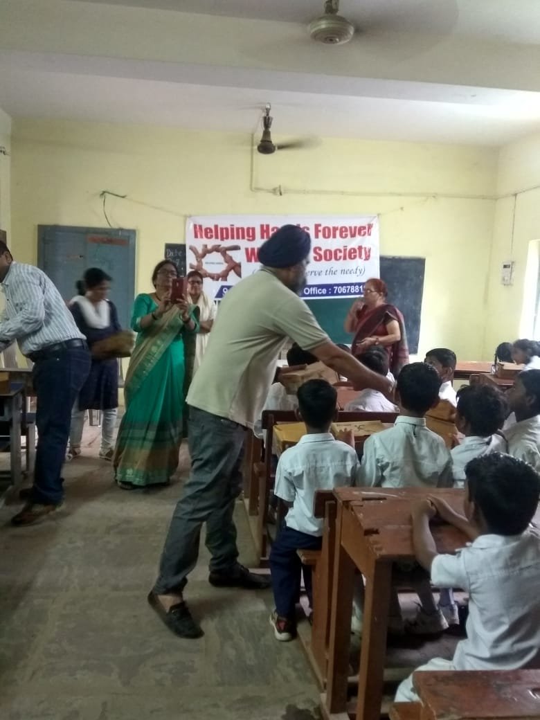 आज हेल्पिंग हैंड टीम पहुंची आर्य कन्या स्कूल, जहां लगभग 40 बच्चों को व्हाइट यूनिफॉर्म शूज प्रदान किए गए. यहां अधिकांश बच्चे चप्पल सैंडल इत्यादि पहनकर क्लास में आए थे शूज़ प्राप्त होते ही उनके चेहरे पर जो खुशियां दिखी ,उससे लगा कि हमने अपना उद्देश्य प्राप्त किया. आज के इस सेवा कार्य में संस्था की वरिष्ठ सदस्य श्रीमती विजयलक्ष्मी कोचर जी एवं कार्यकारिणी सदस्य श्री सौरभ जैन जी द्वारा अपना सक्रिय योगदान प्रदान किया गया. इसके लिए हम उनका आभार व्यक्त करते हैं.
